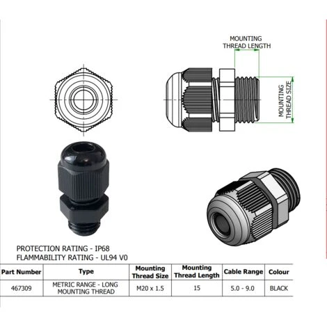 2x Presse étoupe Noir M20 Pour Câble Diamètre 5mm – 9mm