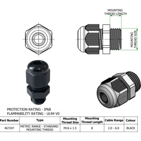 4x Presse étoupe Noir M16 Pour Câble Diamètre 2mm – 6mm