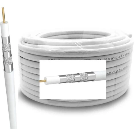 50 m Câble Coaxial TV, 5fois blindé pour installation SAT, DVB-T, HD, D3, 4K 13db blanc