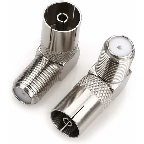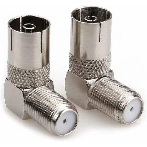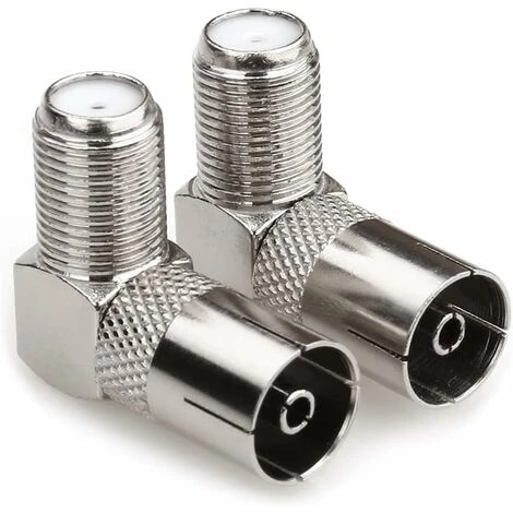 Prise femelle coaxiale pour antenne TV sur un connecteur adaptateur coudé à angle droit de 90 degrés,