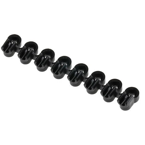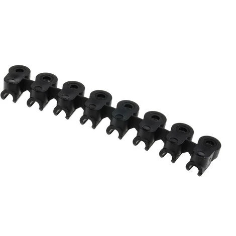 Barrettes de clips pour tube. Barrettes de clips fragmentables manuellement ou avec un coupe-tube. Possibilité de clipser des raccords LF 3000 sur certains modèles. Livrées en boîte de 5 barrettes de même diamètre avec vis auto-taraudeuses.