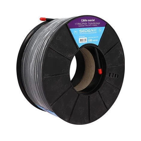 Ce câble coaxial avec conducteur 100% cuivre spécial TV permet de connecter une antenne terrestre ou satellite (parabole) à l’installation TV de votre habitation. Ce câble à faible perte (17 PAtC) permet de conserver un bon signal et une bonne réception des chaînes de la TNT même sur de grandes longueurs.
