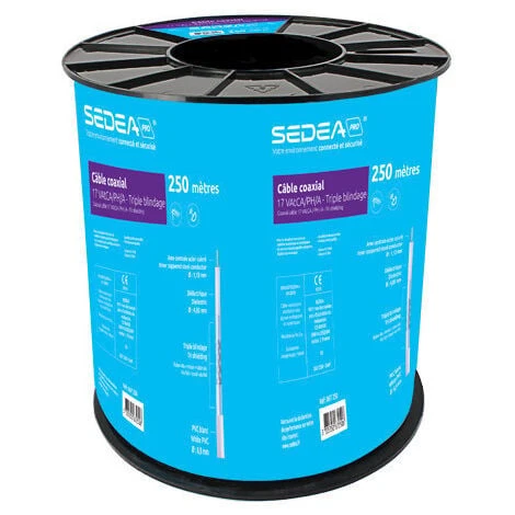 Ce câble coaxial avec conducteur 100 % cuivre spécial TV permet de connecter une antenne terrestre ou satellite (parabole) à l’installation TV de votre habitation. Ce câble à faible perte (17 VAtC) permet de conserver un bon signal et une bonne réception des chaînes de la TNT même sur de grandes longueurs.