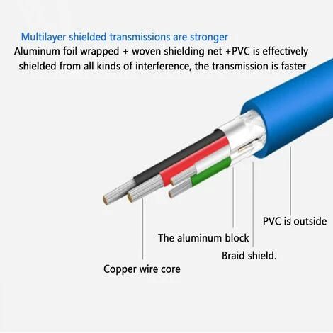 de cuivre tressée et blindage double couche en aluminium platine: peut réduire considérablement les interférences électromagnétiques et les interférences radio