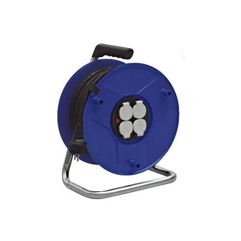 Tambour monobloc, moulé en matière incassable, équipé d’un socle de 4 prises de courant 2 P+T, 16 A/230 V à clapets, munies de protection enfants