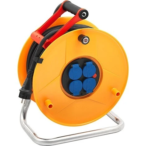 – Enrouleur de câbles standard de couleur jaune avec disjoncteur thermique et une longueur de câbles de 40m.Â