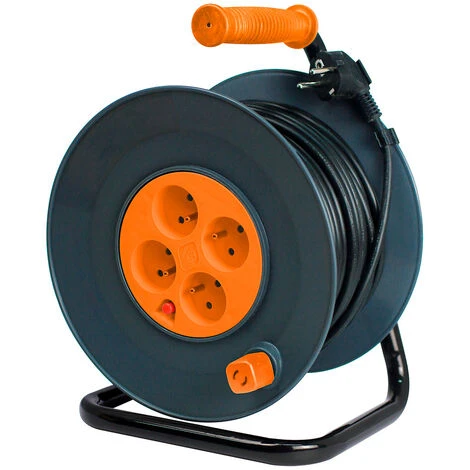 Enrouleur de bricolage 4 prises 2P+T équipé d’une poignée érgonomique pour plus de confort, d’une peinture protectrice,