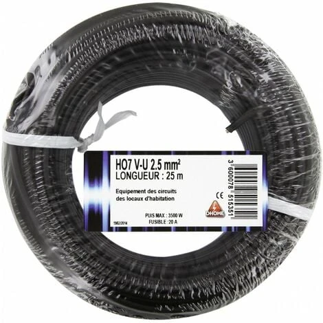 Fil électrique H07 V-u 2,5 Mm² 25 Mêtres Noir