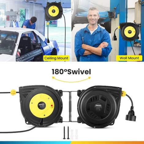 - 【 Support pivotant pour montage mural / plafond 】 Le support de montage pivotant à 180 degrés vous permet de tirer et de relâcher facilement le cordon dans plusieurs directions ; l’enrouleur de cordon rétractable peut être monté au mur ou au plafond facilement à l’aide d’un support séparé.