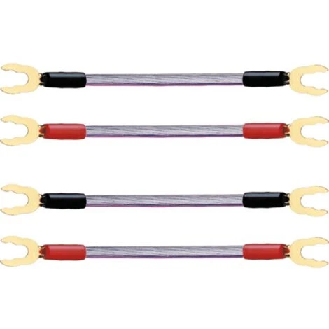 Ponts de câble en cuivre OFC argenté de 6 mm2 pour une connexion optimale des bornes bi-Wire. Longueur de câble 4 x 0,1 M. Ce texte a été traduit par une machine.