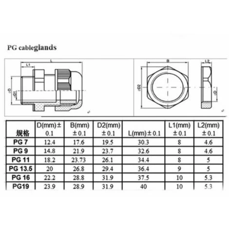 Modèle : PG7, PG9, PG11, PG13.5, PG16, PG19, 5 pièces pour chaque presse-étoupe, 30 pièces au total.