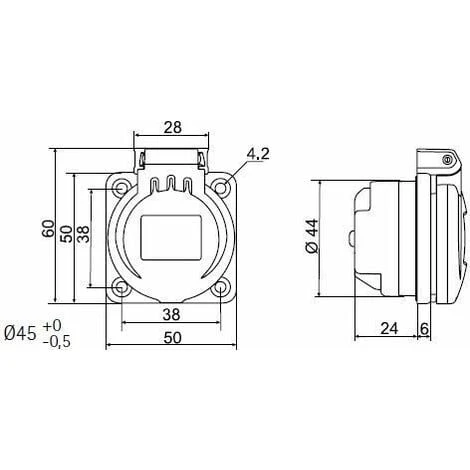 Socle de prises de courant pour intégration sur coffret de prises ou toutes autres applications (groupes électrogènes,machine,etc…)