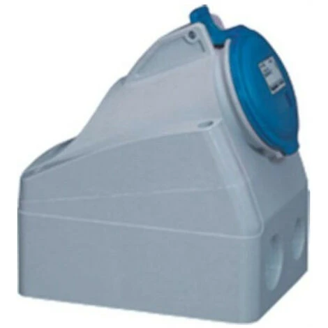 Prise SUPERCOMPACT 32A 2 pôles de terre 250V IP44. Prises murales en saillie – Angles possibles 5 ou 25° selon le sens d installation du coffret – Fermeture sans outil – Orientation unique des vis de raccordement – Livrées sans blocage – Bleu 200/250 V – 2P T – 32 A. P17 PRO – Prises et fiches industrielles – Conforme à EN 60309-1 et 2 – IP44 selon EN 60529 – IK 09 (sauf prise murale IK 08) selon EN 62262 – Matière : polyamide 6 – Auto-extinguible : 850ºC (pièces en contact avec des pièces sous tension) / 650 ºC (corps).