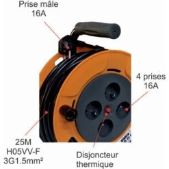 Enrouleur 4 Prises HO5VV-F 3G1mm² 25m + Coupe-circuit – Zenitech
